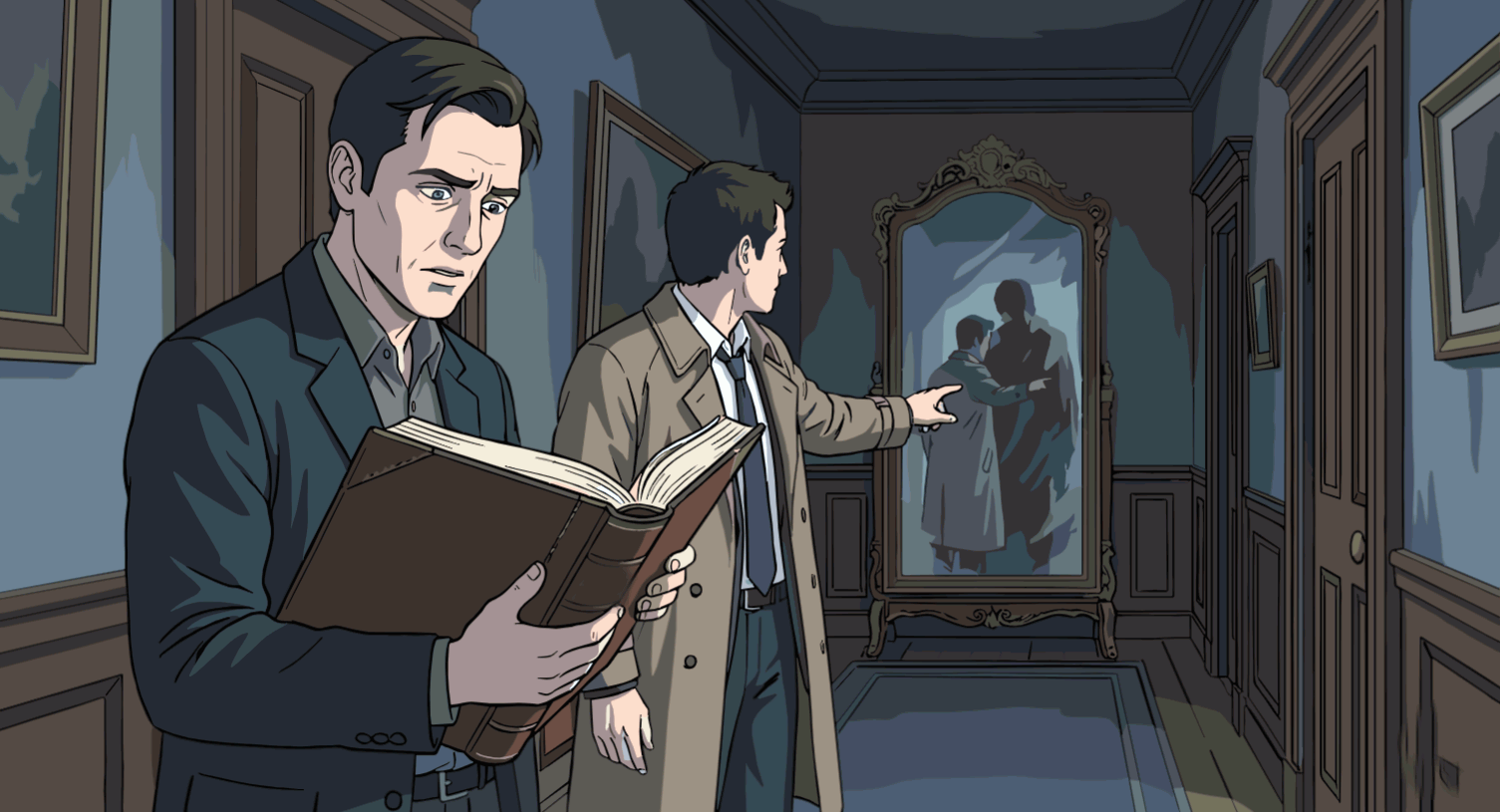 El espejo inquietaba el fondo de un corredor en una quinta de la